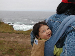 Luca napped on Baba’s back for most of the time, then woke up and was happy to see the sea.