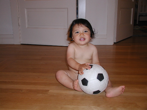 Soccer, part II On his way to the bath yesterday, Luca decided that he had to have one last go around with his soccer ball.