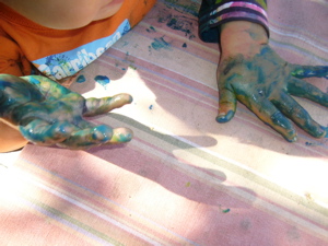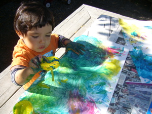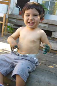 How very beautiful, Luca! What fun you are having! Did mama get covered in paint too? I hope so!….and you look so grown-up!